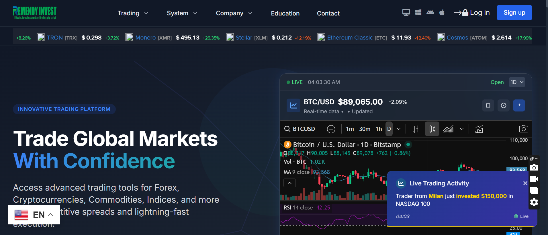 This project is a feature-rich crypto broker website built to replicate the structure, functionality, and user experience of modern cryptocurrency and CFD trading platforms. The goal of this project was to design and implement a realistic fintech web application interface that clearly communicates trading services, investment features, and market data while maintaining a professional and trustworthy visual identity.