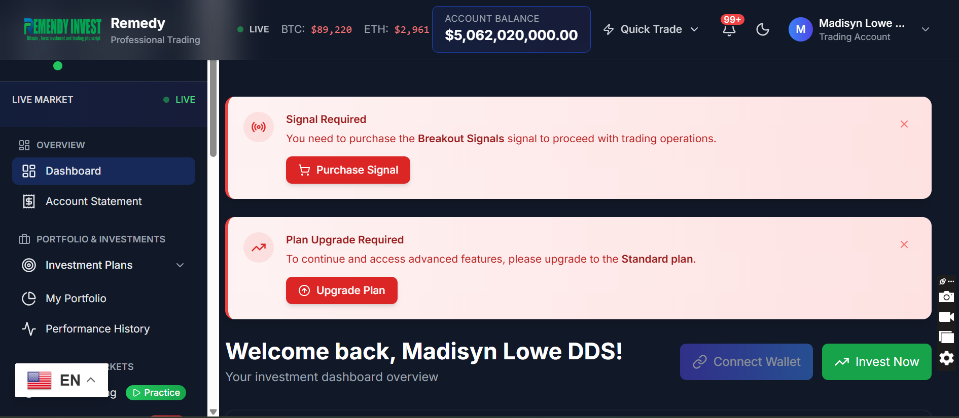 An Intuitive Broker website with amazing capabilities, able to give realtime feedback on investors and their amount paid for broker mentorship and more