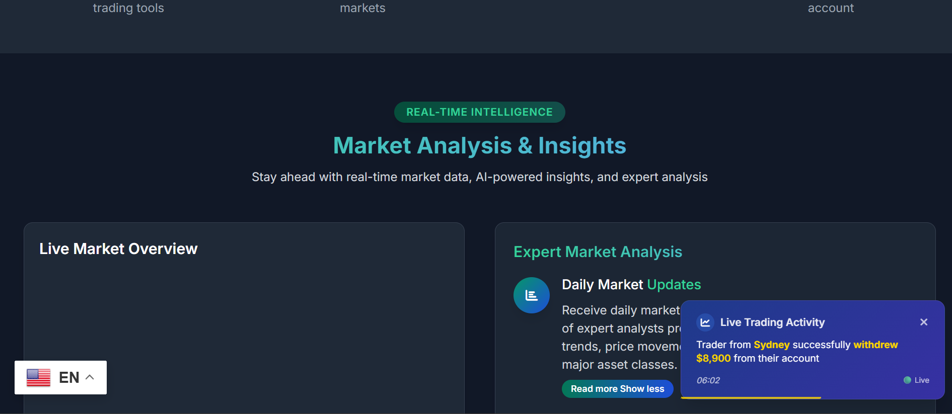 The strategy focused on creating a professional fintech website that clearly communicates trading services, builds user trust, and guides visitors toward account registration through structured content and strong calls-to-action.