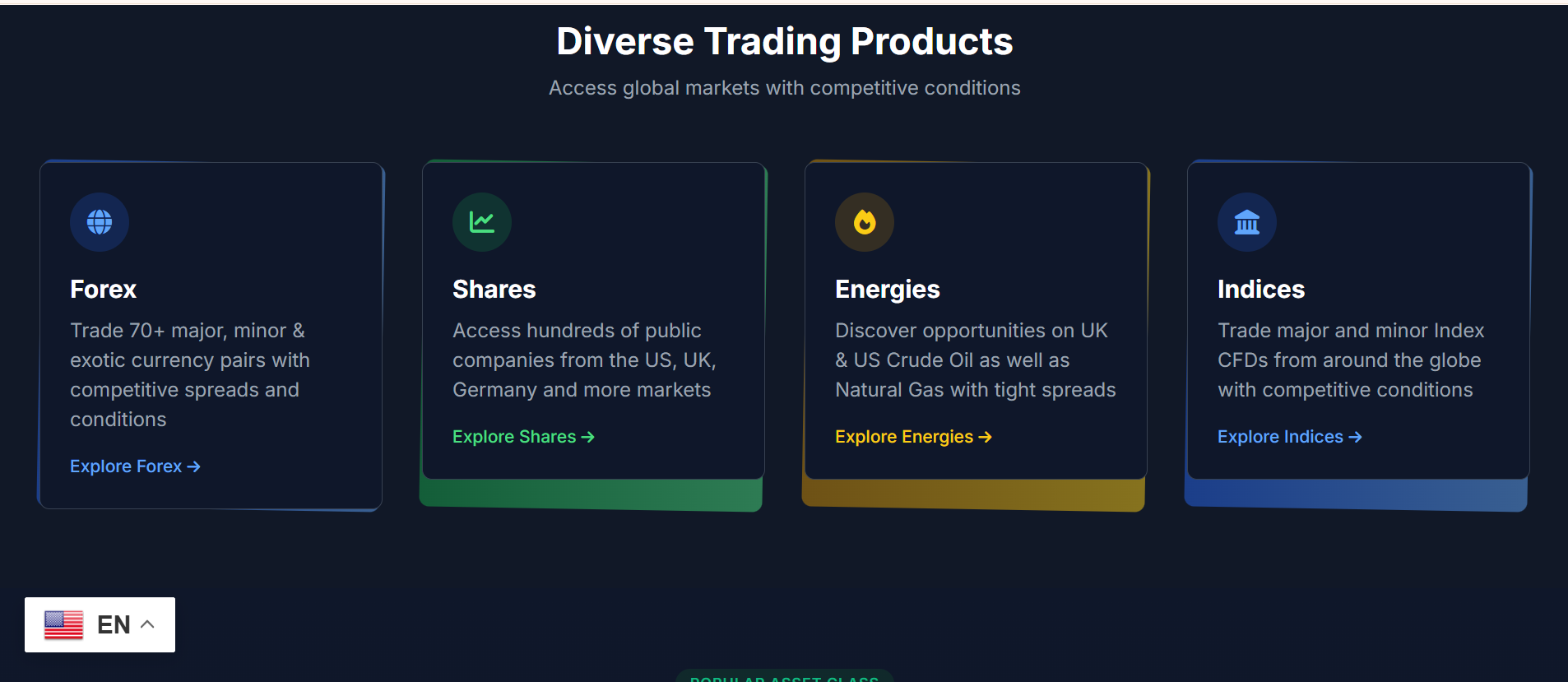 The platform includes investment and trading feature sections that outline account types, trading strategies, and automated or managed trading concepts. This shows an understanding of how brokerage platforms communicate technical financial services in a simplified, marketing-friendly, and structured way.
